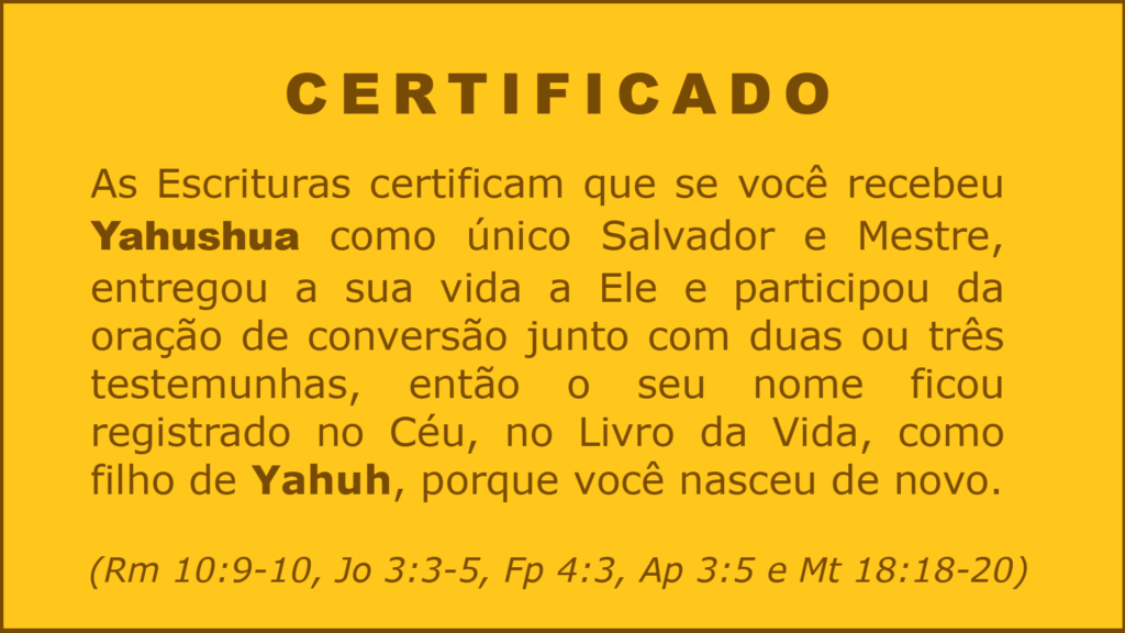Baixe o seu certificado de Conversão ao Salvador Yahushua.